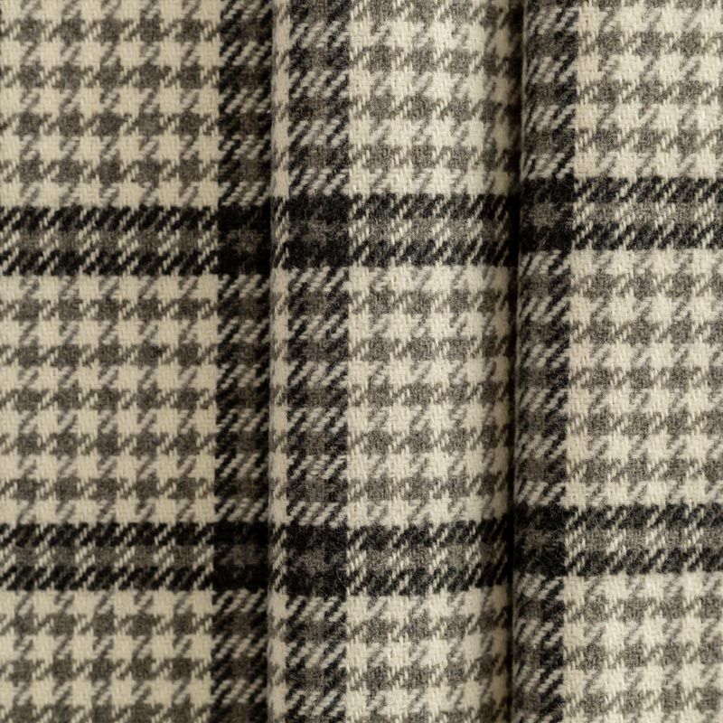 Стильная и элегантная пальтовая ткань с светлых тонах. Поверхность бархатистая, мягкая, очень приятная на ощупь, пластичная, мягко драпируется в складки, немного держит форму. Сочетание линий черного, серого оттенков и классического узора "гусиная лапка" образует сложную красивую клетку. Отлично подойдет для пошива пальто, теплых костюмов, юбки, шорт, жакета, кейпа, жилета.