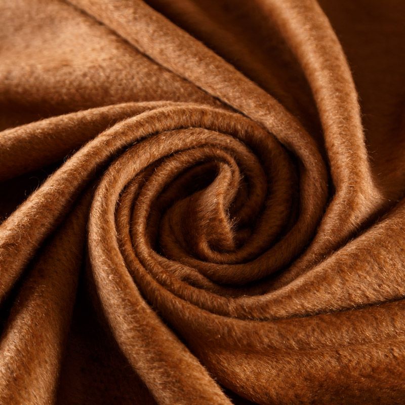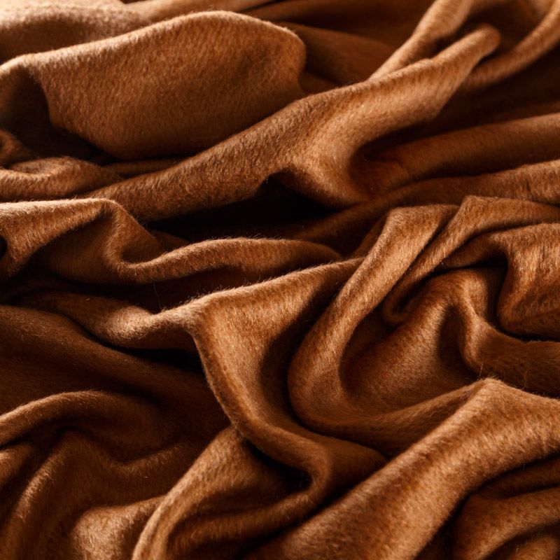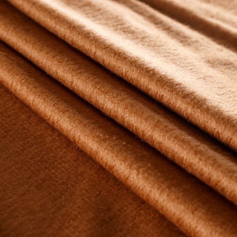 Пальтовая итальянская шерсть в темно-карамельном оттенке. Ткань плотная, достаточно теплая, комфортная для одежды на сезон осень-зима. Полотно имеет мягкий ворс. Нежное на ощупь, не толстое и не тяжелое, слегка держит форму. Прекрасно подойдет для пошива женских пальто, теплых костюмов, кейпов, мягких бомберов, жилетов и головных уборов.