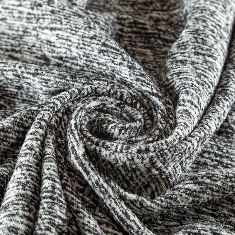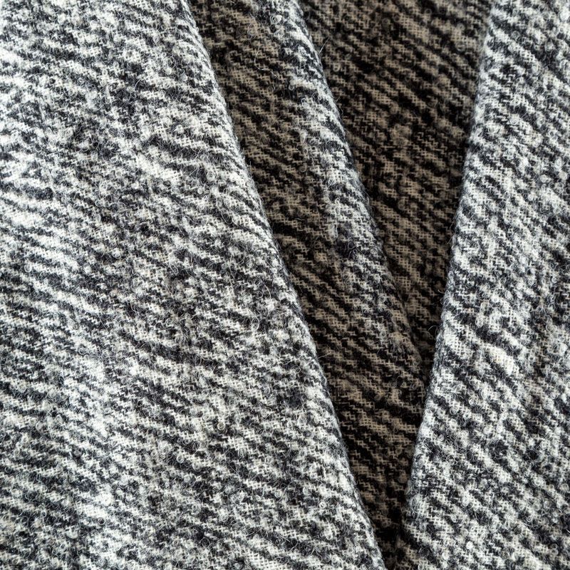 Итальянская смесовая пальтовая ткань с черно-белым абстрактным узором. Очень теплая, пластичная, объемная, немного рыхлая. Подойдет для пошива демисезонного пальто на подкладе, кардигана, жилета, теплого костюма.