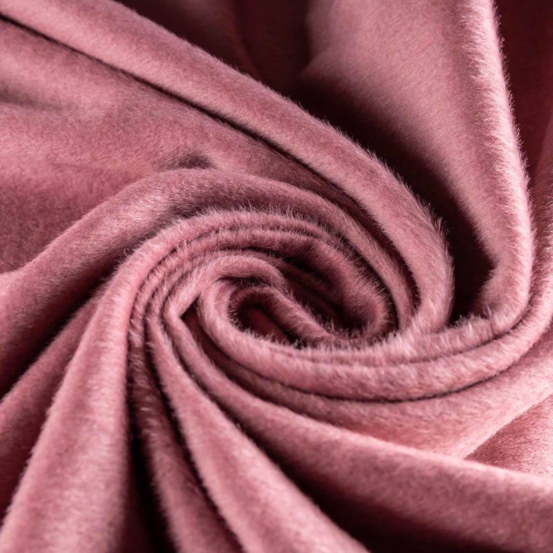 Пальтовая итальянская шерсть в приглушенном розовом оттенке. Ткань плотная, достаточно теплая, комфортная для одежды на сезон осень-зима. Полотно ворсистое, имеет «мохеровый эффект». Учитывайте направление ворса при крое изделия. Мягкое и нежное на ощупь, не толстое и не тяжелое, хорошо держит форму. Прекрасно подойдет для пошива женских пальто, теплых костюмов, кейпов, мягких бомберов, жилетов и головных уборов.