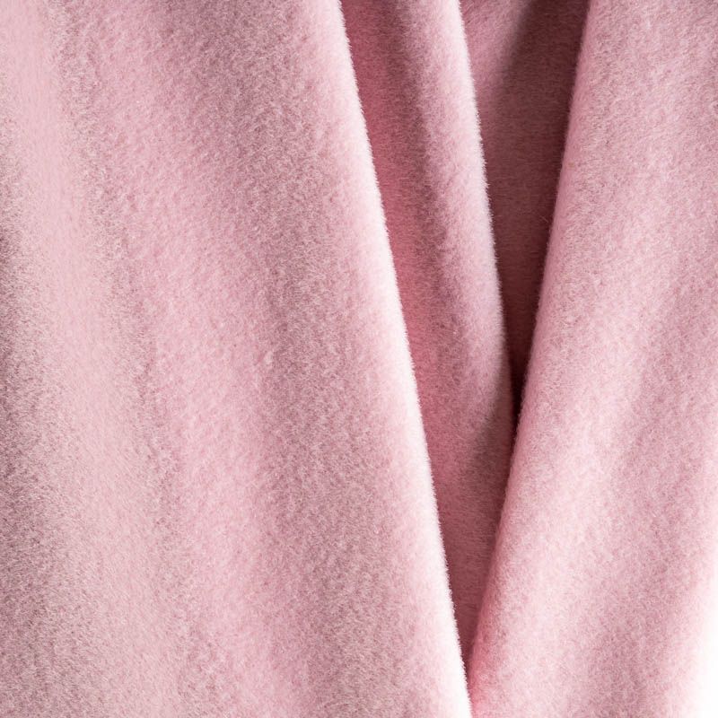Пальтовая итальянская шерсть в холодном розовом оттенке. Ткань плотная, достаточно теплая, комфортная для одежды на сезон осень-зима. Полотно имеет короткий ворс. Мягкое и нежное на ощупь, не толстое и не тяжелое, хорошр держит форму. Прекрасно подойдет для пошива женских пальто, теплых костюмов, кейпов, мягких бомберов, жилетов и головных уборов.