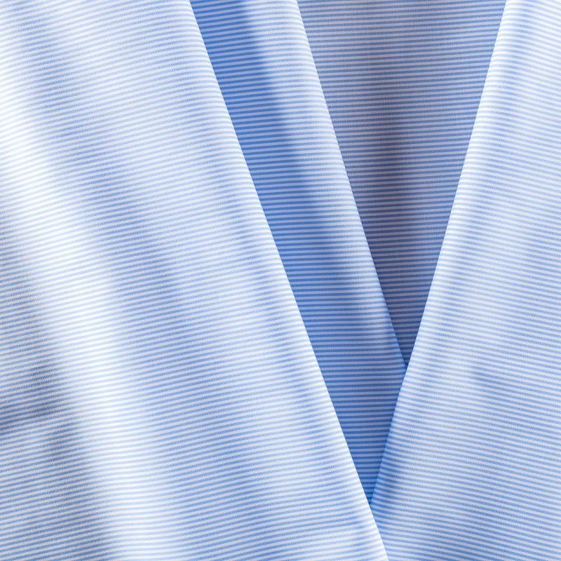 Итальянский плательно-рубашечный хлопок в бело-голубую тонкую полоску. Ткань мягкая, лёгкая, непрозрачная, пластичная и приятная к телу, хорошо драпируется, имеет гладкую матовую поверхность и сатиновое плетение. Прекрасно подойдет как для пошива платья-рубашки, сарафана, платьев различных фасонов, туники, топа, летнего костюма, комбинезона, мужской и детской одежды.