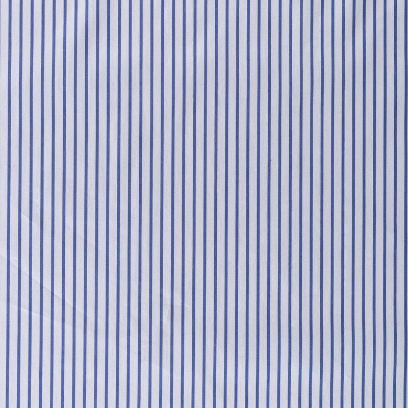 Итальянский плательно-рубашечный хлопок белого цвета в тонкую темно-синюю полоску. Ткань мягкая, лёгкая, непрозрачная, пластичная и приятная к телу, хорошо драпируется, имеет гладкую матовую поверхность и сатиновое плетение. Прекрасно подойдет как для пошива платья-рубашки, сарафана, платьев различных фасонов, туники, топа, летнего костюма, комбинезона.