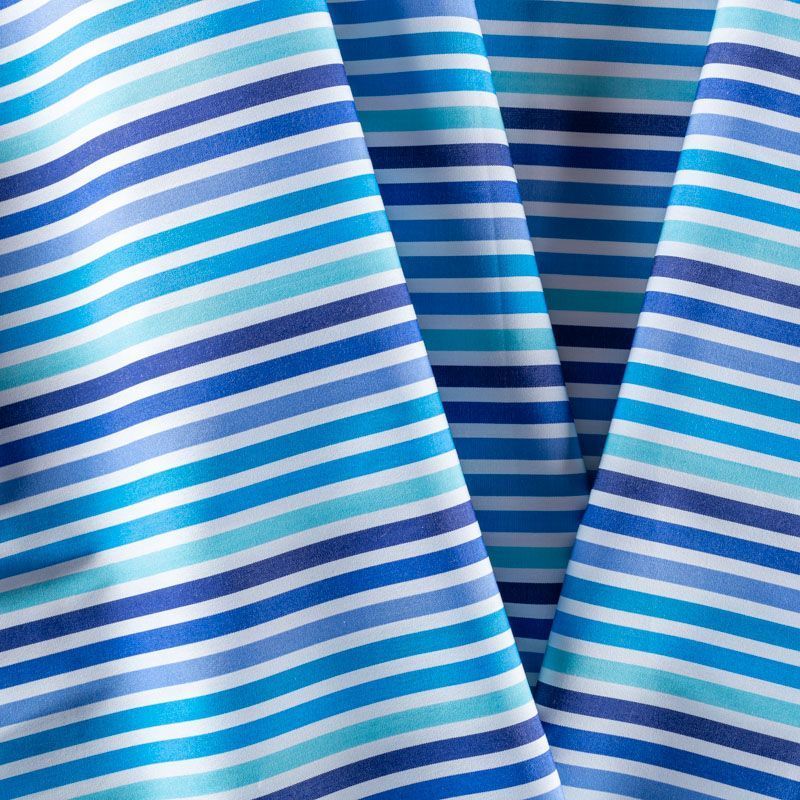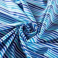 Итальянский плательно-рубашечный хлопок в полоску от синего до голубого оттенка средней ширины. Ткань мягкая, лёгкая, непрозрачная, пластичная и приятная к телу, хорошо драпируется, имеет гладкую матовую поверхность и сатиновое плетение. Прекрасно подойдет как для пошива платья-рубашки, сарафана, платьев различных фасонов, туники, топа, летнего костюма, комбинезона.
