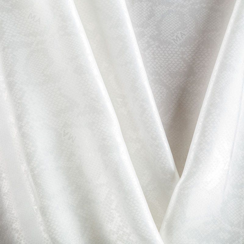 Итальянская подкладочная ткань из вискозы молочного оттенка с жаккардовым анималистичским узором и красивым лоском. Полотно средней плотности, легкое, не просвечивает, хорошо скользит, не тянется. Подойдет для изготовления таких изделий, как пальто, костюмы, куртка, шуба, платье, жакет.