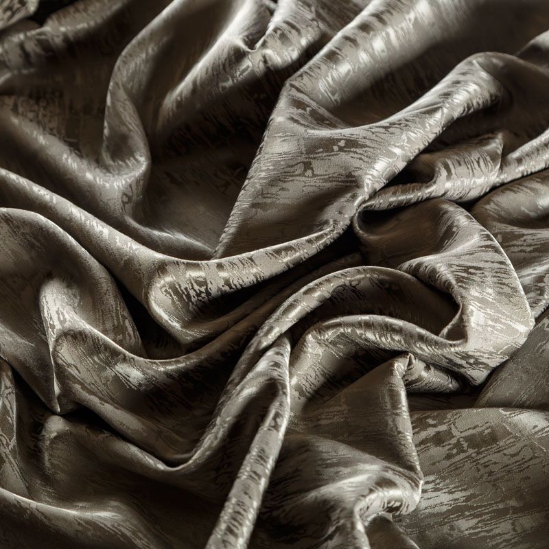 Итальянская подкладочная ткань из вискозы оттенка хаки с жаккардовым абстрактным узором и красивым блеском. Полотно средней плотности, легкое, не просвечивает, хорошо скользит, не тянется. Подойдет для изготовления таких изделий, как пальто, костюмы, куртка, шуба, платье, жакет.