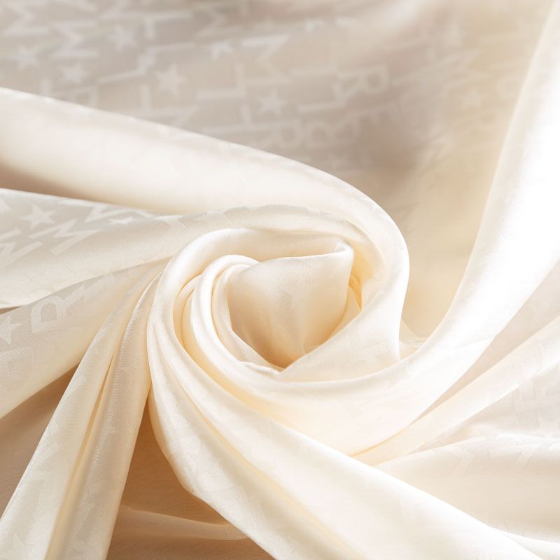 Итальянская подкладочная ткань молочного оттенка с жаккардовым узором и красивым лоском. Полотно легкое, не просвечивает, хорошо скользит, тянется за счет эластана в составе. Подойдет для изготовления таких изделий, как пальто, костюмы, куртка, шуба, платье, жакет, юбка, брюки, шорты.