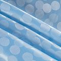 Подкладочная ткань легкая, с жаккардовым крупным "горохом", голубого оттенка, с красивым блеском. Не просвечивает, хорошо скользит. Подойдет для изготовления таких изделий, как пальто, костюмы, куртка, шуба, платье, жакет.