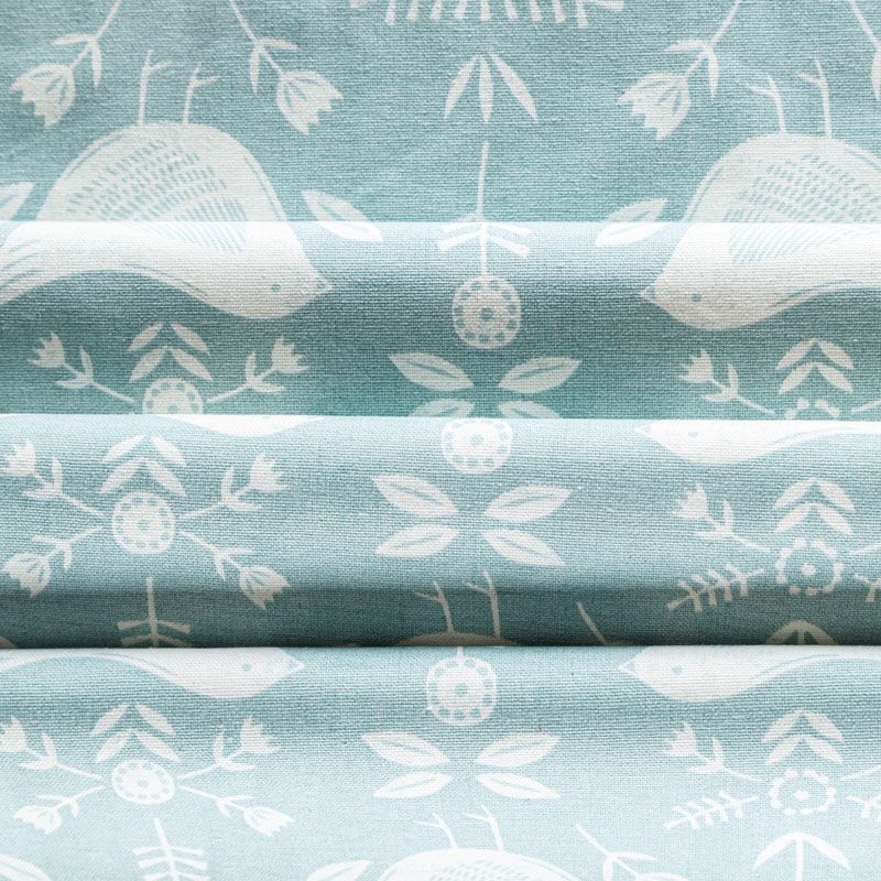 Хлопковая портьерная ткань Нарвик из коллекции Сканди английского производителя Fryett's Fabric. На мятно-бирюзовой текстурированной основе наснесен принт в виде белых стилизованных птиц и цветов. Ткань средней плотности, прекрасно держит форму, драпируется в устойчивые складки. Подойдет для классических портьер, римских штор, покрывал, подушек, скатертей, салфеток и других элементов текстильного интерьера как в самостоятельном исполнении, так и качестве компаньона к однотонным варинтам.