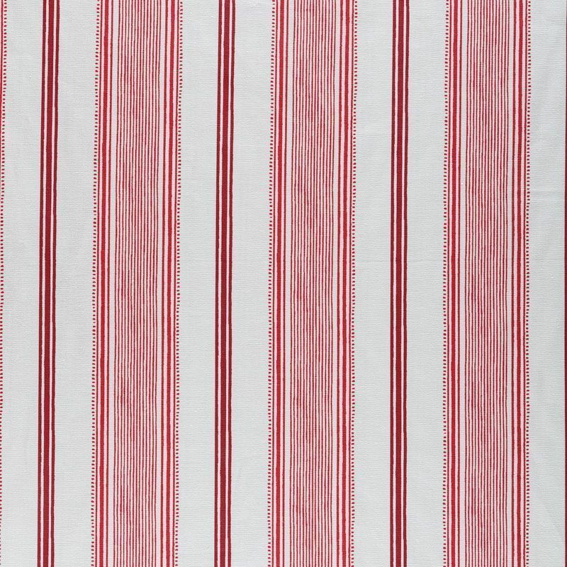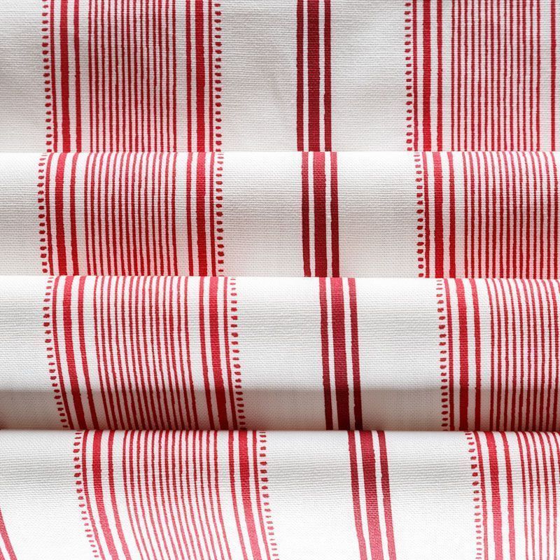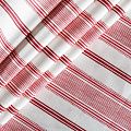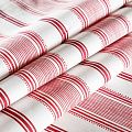 Матовая фактурная портьерная ткань в тонкую полоску, которая расположена вдоль кромки. Представлена в бело-красной палитре. Ткань средней плотности, без блеска, хорошо драпируется, имеет полонтяное переплетение. Прекрасно впишется в самые разные стилевые направления (прованс, кантри). Можно использовать для пошива портьер, римской шторы, салфеток, столового белья, подушек, покрывал и других предметов текстильного интерьера.