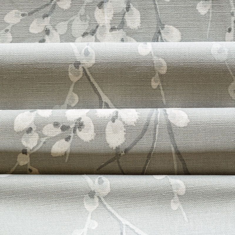 Хлопковая портьерная ткань с изящным весенним принтом в сдержанных серых оттенках. Ткань средней плотности, без блеска, хорошо драпируется, имеет полонтяное переплетение. Можно использовать для пошива портьер, римской шторы, салфеток, столового белья, подушек, покрывал и других предметов текстильного интерьера.