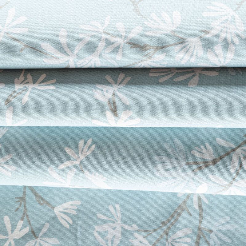 Хлопковая портьерная ткань английского производителя. На голубой текстурированной основе нанесен изящный растительный принт в серо-белой гамме. Ткань средней плотности, прекрасно держит форму, драпируется в устойчивые складки. Подойдет для классических портьер, римских штор, покрывал, подушек, скатертей, салфеток и других элементов текстильного интерьера как в самостоятельном исполнении, так и качестве компаньона к однотонным варинтам.