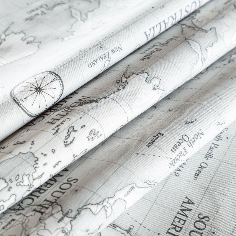 Хлопковая ткань с от английского производителя с гео принтом для юных искателей приключений и любителей путешествовать.Ткань средней плотности, без блеска, хорошо драпируется, имеет полонтяное переплетение. Прекрасно подойдет для оформления детской или дачного интерьера. Можно использовать для пошива портьер, римской шторы, салфеток, столового белья, подушек, покрывал, обивки мебели.
