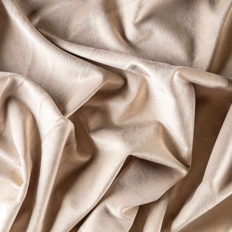 Короткий ворс ткани очень красиво играет на свету и создаёт ощущение разных оттенков при драпировке, поверхность отливает благородным блеском. Ткань красиво, мягко и пластично драпируется. Портьеры из этой ткани задерживают свет и приглушают звуки, за счёт низкой пропускной способности холода или жары, удерживает постоянную температуру в комнате. Подходит для пошива штор в гостиную, спальню, кабинет а также для покрывал, подушек и отделки.
