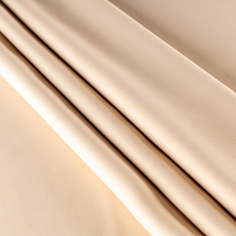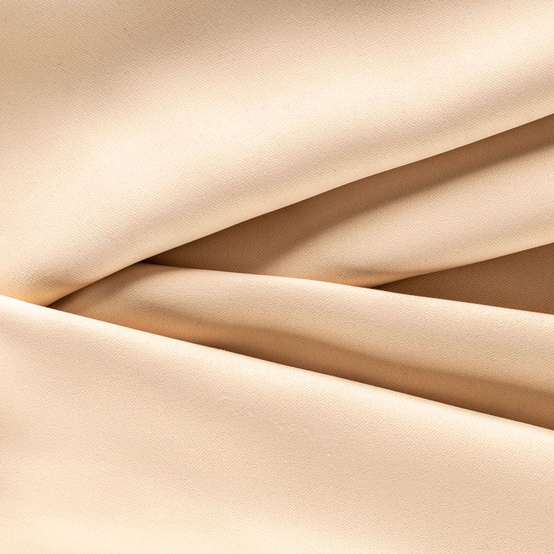 Двухстороняя плотная ткань. Обе стороны гладкие, имеют сатиновый легкий глянец. Ткань хорошо драпируется, укладываясь в крупные ниспадающие пластичные складки и позволяет использовать любые виды крепления для штор – люверсы, ленту, кольца.  Блокирует от 30 до 70 % проникновение света в помещении, не склонна к выгоранию и деформации. Удачно впишется в такие интерьеры, как эко, лофт, модерн в качестве портьер и других элементов текстильного оформления.