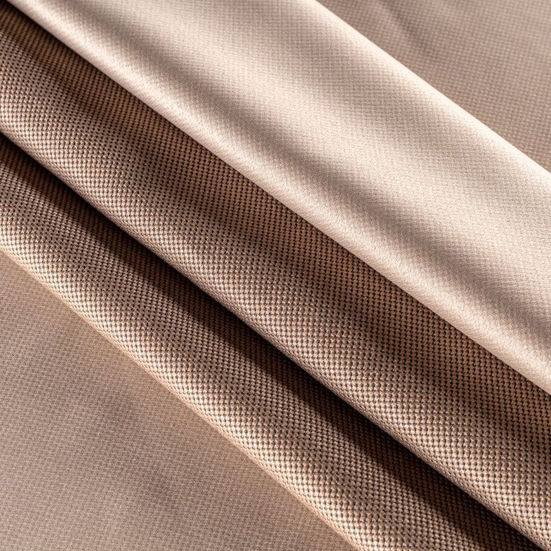 Двухстороняя плотная ткань.Одна сторона - матовая с плетением рогожка,а другая с сатиновым легким глянцем. Хорошо драпируется, укладываясь в крупные ниспадающие пластичные складки и позволяет использовать любые виды крепления для штор – люверсы, ленту, кольца.  Блокирует до 50 % проникновение света в помещении, не склонна к выгоранию и деформации. Удачно впишется в такие интерьеры, как эко, лофт, модерн в качестве портьер и других элементов текстильного оформления.