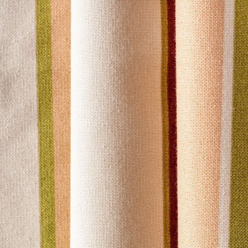 Испанская матовая фактурная портьерная ткань в полоску, которая расположена вдоль кромки. Представлена в палитре пастельных тонов. Ткань очень приятная на ощупь за счёт хлопка в составе и очень универсальная, прекрасно впишется в самые разные стилевые направления (прованс, кантри). Можно использовать для пошива портьер, римской шторы, салфеток, столового белья, подушек, покрывал, обивки мебели.