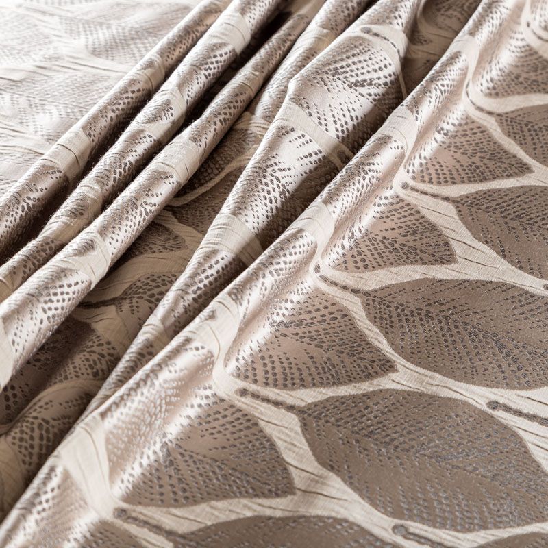 Стильная жаккардовая ткань светло-коричневого оттенка с потрясающим геометрическим стилизованным дизайном листьев из коллекции Акация известного бренда Fryett's. Ткань высокой плотности, имеет фактурную поверхность и сдержанный сатиновый блеск, прекрасно держит форму. Ткани этой коллекции прекрасно впишутся в традиционный и современный интерьер в качестве римской или классической шторы, подушек, обивки мебели.