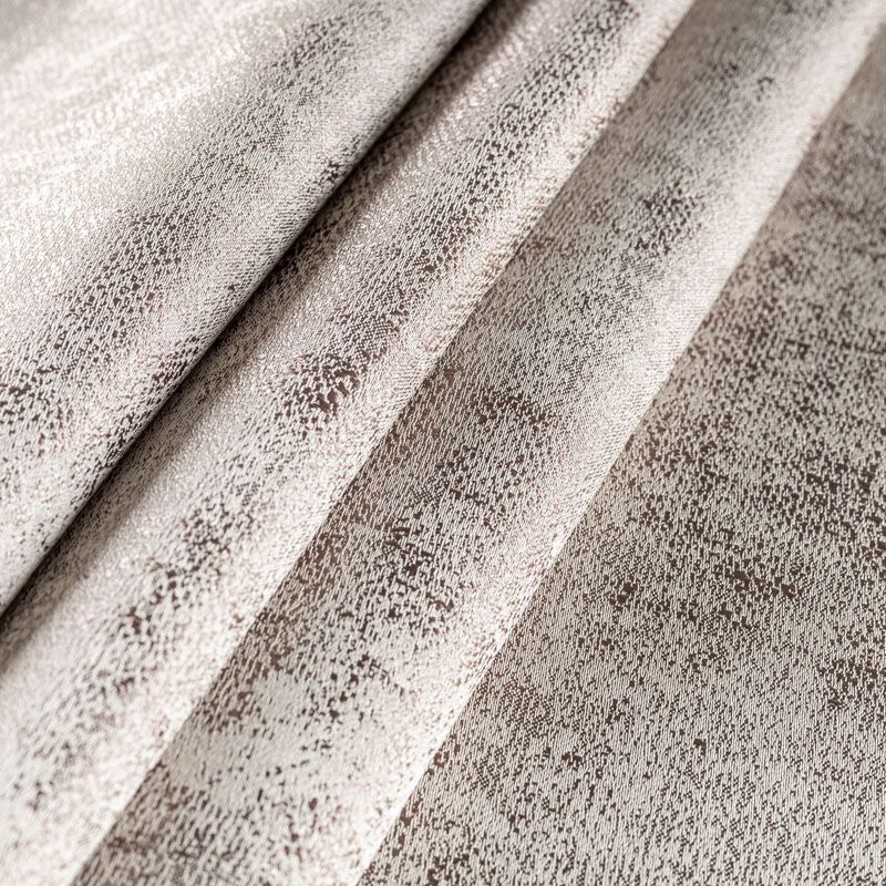 Стильная жаккардовая ткань с модным абстрактным дизайном, создающим эффект серебряного или золотого песка с ярко выраженным перламутровым блеском, прекрасно подойдет для современного интерьера. Ткань средней плотности, хорошо драпируется и держит форму. Подойдет в качестве штор для гостиной, спальни, кабинета, комнаты подростка, также можно использовать для пошива покрывала, декоративных чехлов, подушек, римской шторы.