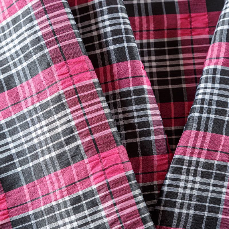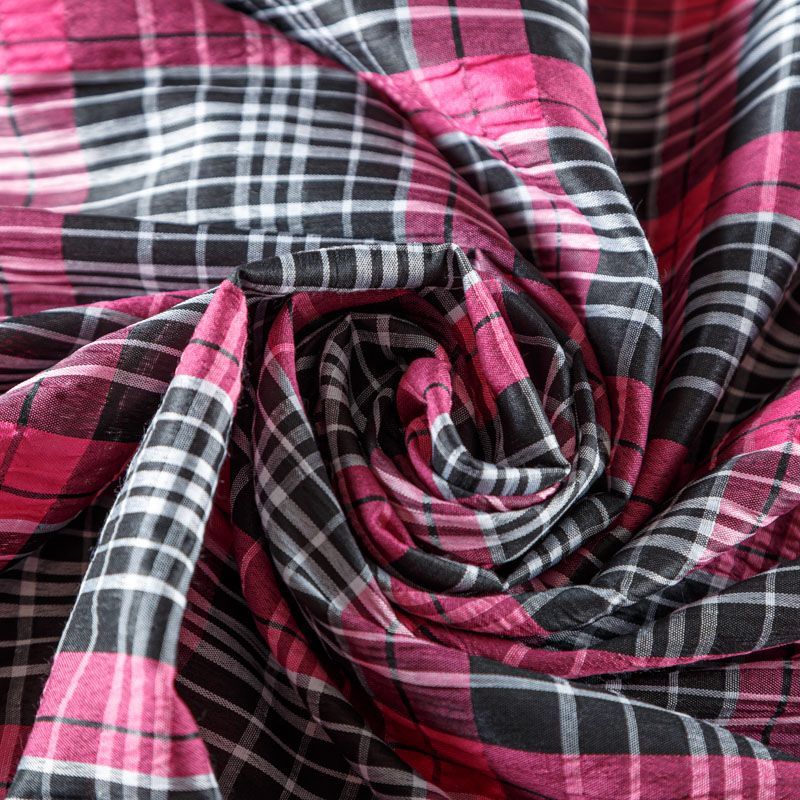 Легкая плательно-рубашечная ткань в яркую клетку. Материал мягкий, тонкий, непрозрачный, пластичный и приятный к телу, хорошо драпируется, имеет фактурную жатую поверхность. Прекрасно подойдет как для пошива рубашек, платья-рубашки, сарафана, туники, топа, летнего костюма.
