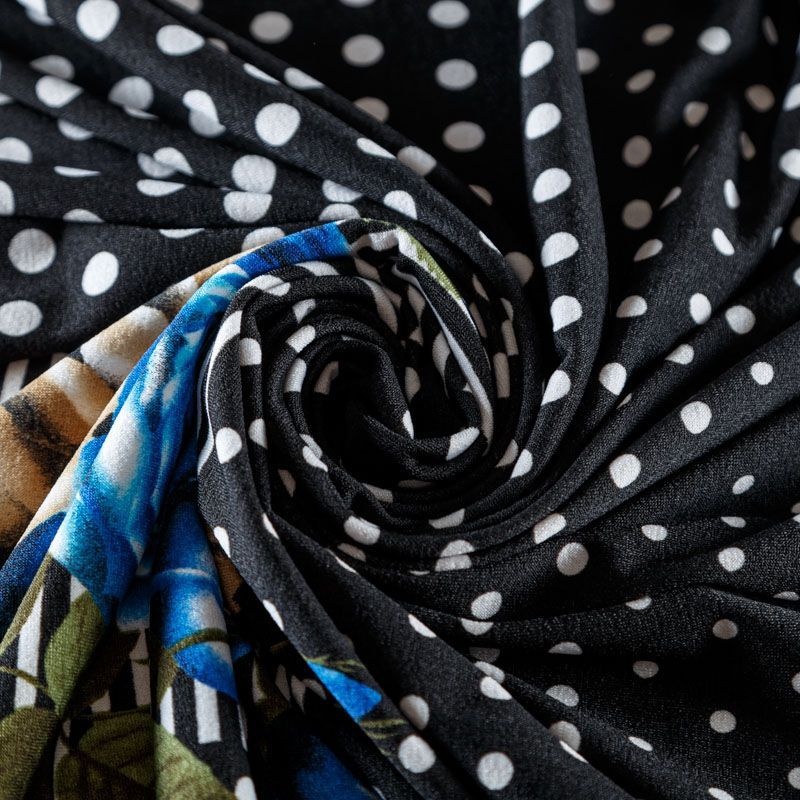 Трикотаж средней плотности, хорошо тянется за счет эластана в составе. Сочетание нескольких принтов образуют сложный цветочно-геометрический рисунок. Ткань не сухая, мягкая, не просвечивает, теплая, хорошо драпируется. Отлично подойдет для пошива платья, кардигана, свитшоша, лонгслива, мягкого жакета, юбки.