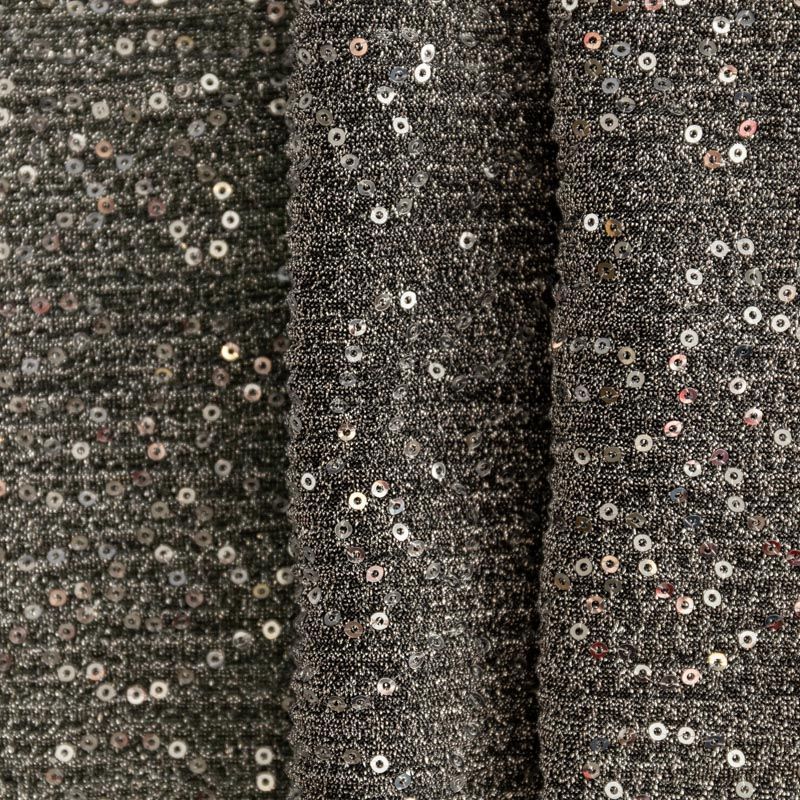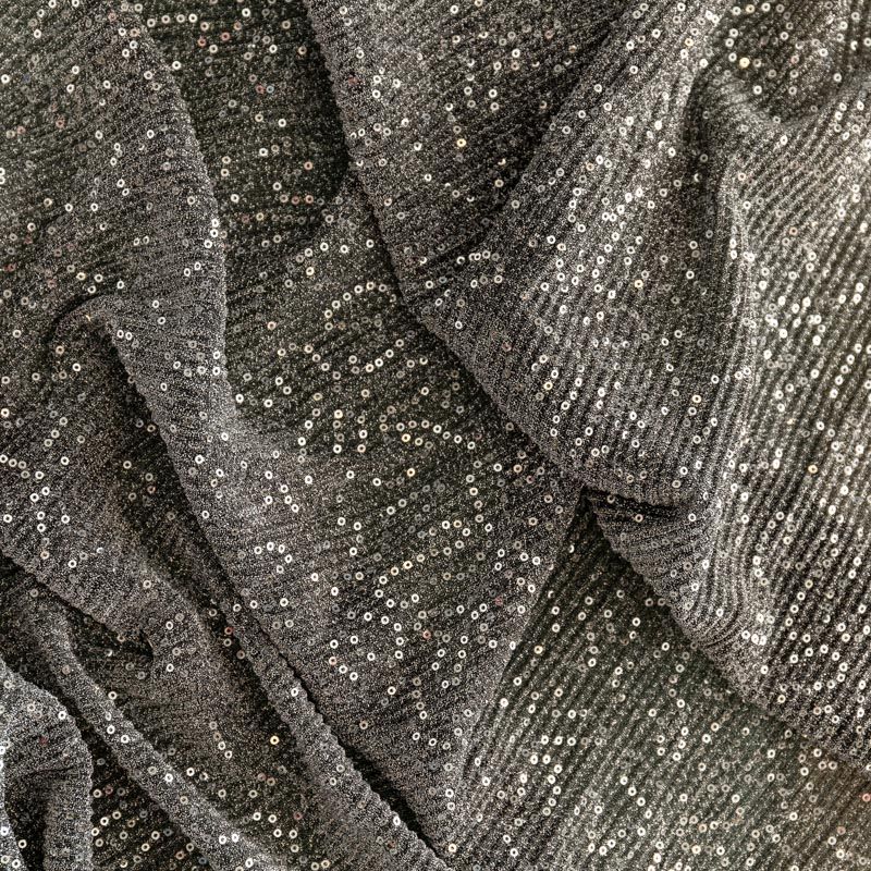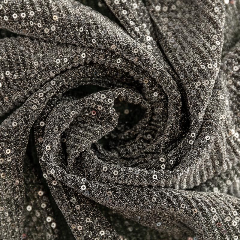 Трикотаж гофре 1120-341-056-0023 серебристо-черный с пайетками