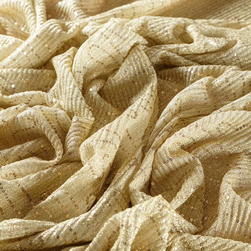 Трикотаж-гофре с пайетками 056-09124 желтое золото однотонный
