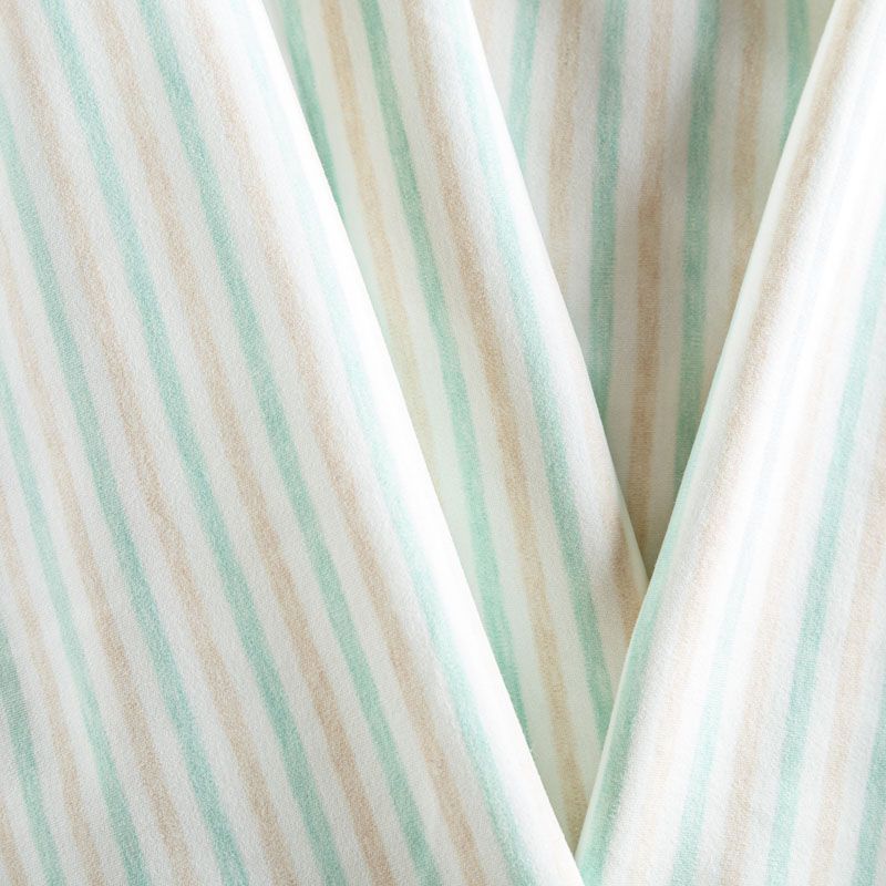 Хлопковый трикотаж качества пенье в полоску. Поверхность ткани гладкая, полотно средней плотности, не толстое, мягкое и нежное на ощупь, тянется за счет эластана в составе. Прерасно подойдет для пошива детской одежды, постельного белья и комплектов в кроватку, пижамы, домашней и летней одежды.