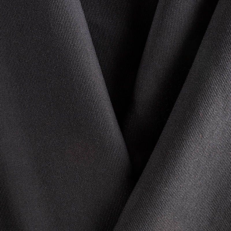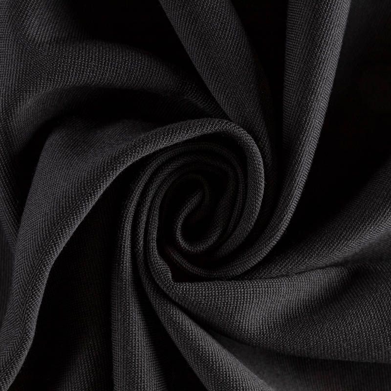 Итальянский плотный шерстяной трикотаж черного цвета. Поверхность с поперечными полосочками. Трикотаж пластичный, но держит форму, а также упругий и прочный, хорошо тянется, не просвечивает. Прекрасно подойдет для жакетов, кардиганов, платьев с четким силуэтом, юбки.