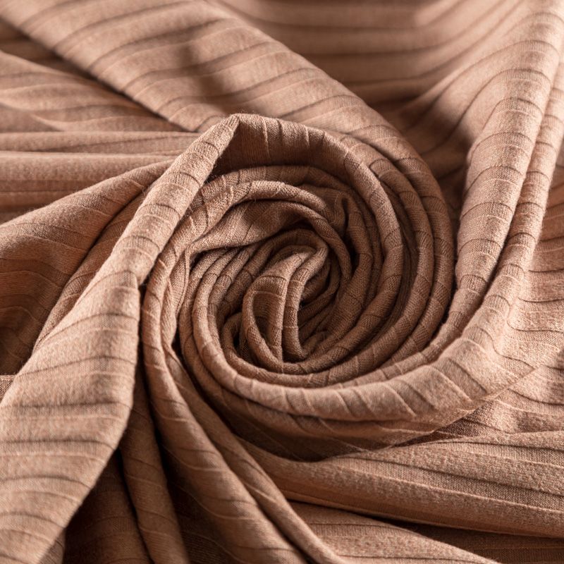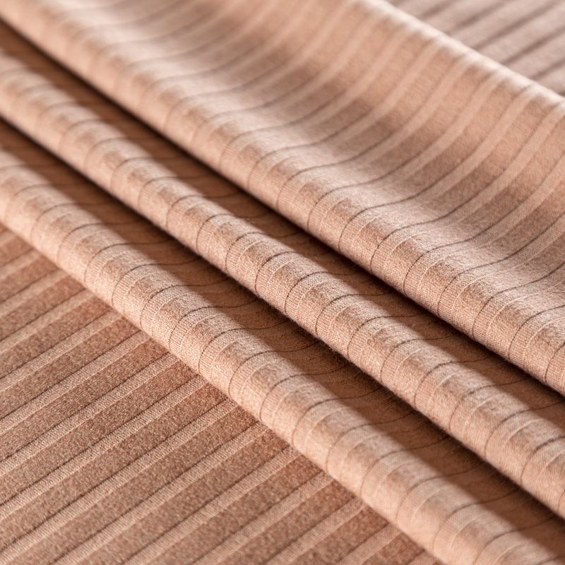 Трикотаж-лапша средней плотности, с высокой степенью эластичности, поверхность рельефная за счет эффекта резинки. С изнанки трикотаж гладкий, комфортный, подходит для использования без подклада. Сшить из такого полотна можно топы, лонгсливы, водолазки, платья,  юбки, брючные комплекты. Направление полос - вдоль линии кромки.