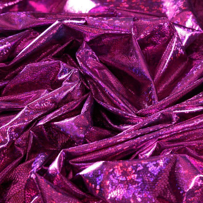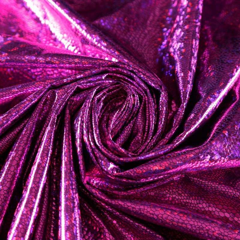 Эффектное трикотажное полотно с напыленными разноцветными блестками. Поверхность фактурная с рисунком под рептилию, который не деформируется при растяжении трикотажа. Материал очень пластичный, образует струящиеся мягкие складки, отлично тянется, не просвечивает, не мнется. Изнаночная сторона матовая, приятная на ощупь. Идеальный выбор для нарядных моделей, гимнастических и танцевальных костюмов.