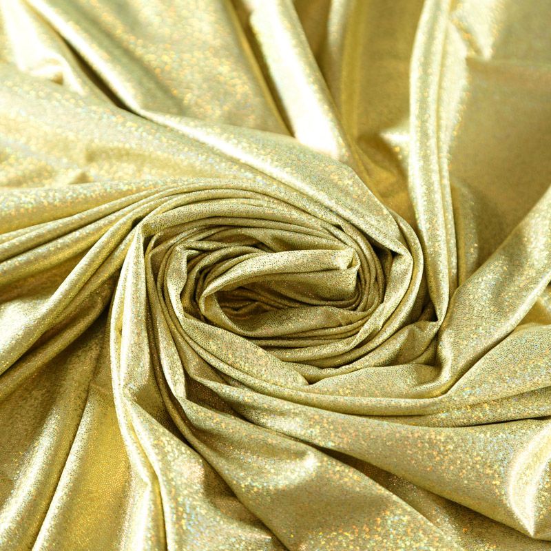 Эффектное трикотажное полотно с напыленными разноцветными блестками. Материал очень пластичный, образует струящиеся мягкие складки, отлично тянется, не просвечивает, не мнется. Изнаночная сторона матовая, приятная на ощупь. Идеальный выбор для нарядных моделей, гимнастических и танцевальных костюмов.
