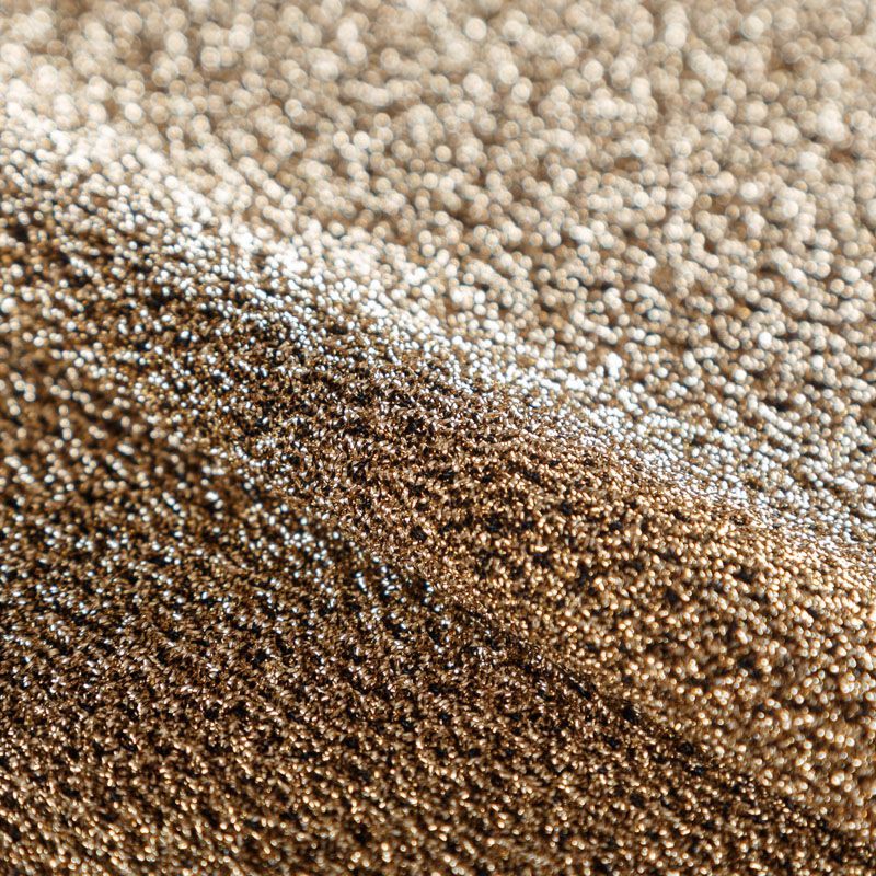 Трикотажное полотно с металлизированным блеском и мерцанием. Золотистые люрексные нити вплетены в структуру полотна и создают объемный "вспененный" эффект, при этом изнанка гладкая и ровная. Ткань очень приятная к телу, не колется, не просвечивается, очень эластичная, отлично драпируется и ниспадает, красиво ляжет по фигуре. Идеальный вариант для пошива вечерних и нарядных платьев облегающего силуэта, топов, комбинезона, юбки, широких брюк, туник, кардиганов, накидок.