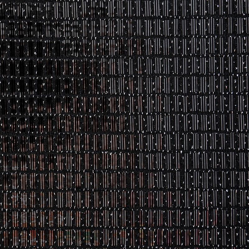 Трикотажное черное полотно с блестящими глянцевыми пайетками и серебристой люрексной нитью. Декор накатан на основу, поэтому будет комфортен в носке. Ткань пластичная, прекрасно драпируется и укладывается в складки, легко садится по фигуре за счёт основы с эластаном, не прозрачная, позволит шить изделия без подклада. Идеально подойдет для пошива нарядных вечерних образов: платья, юбки, топа, туники, широких брюк, жакета, кардигана.
