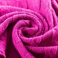 Итальянский шерстяной трикотаж насыщенного оттенка фуксии с крупными ажурными вязаными "косами". Полотно плотное, мягкое, эластичное, не просвечивает. Прекрасно подойдет для пошива теплых, объемных уютных свитеров, кардиганов, жилета, платьев, шарфов, палантинов, пончо или снудов.