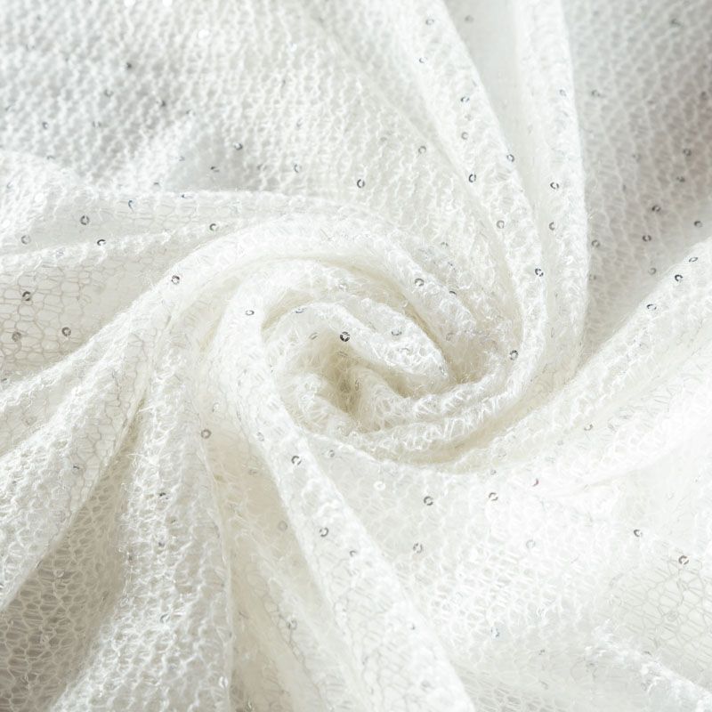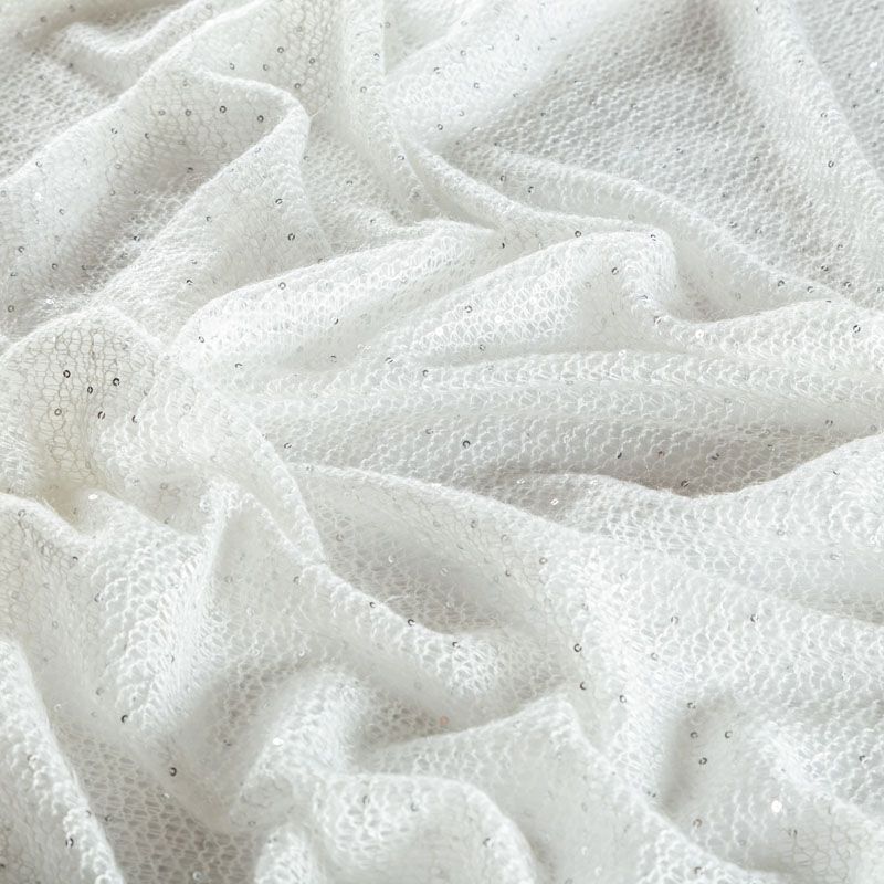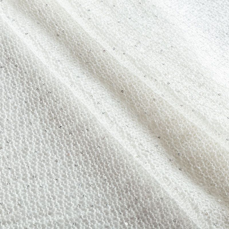 Трикотаж вязаный с пайетками 056-03468 белый однотонный