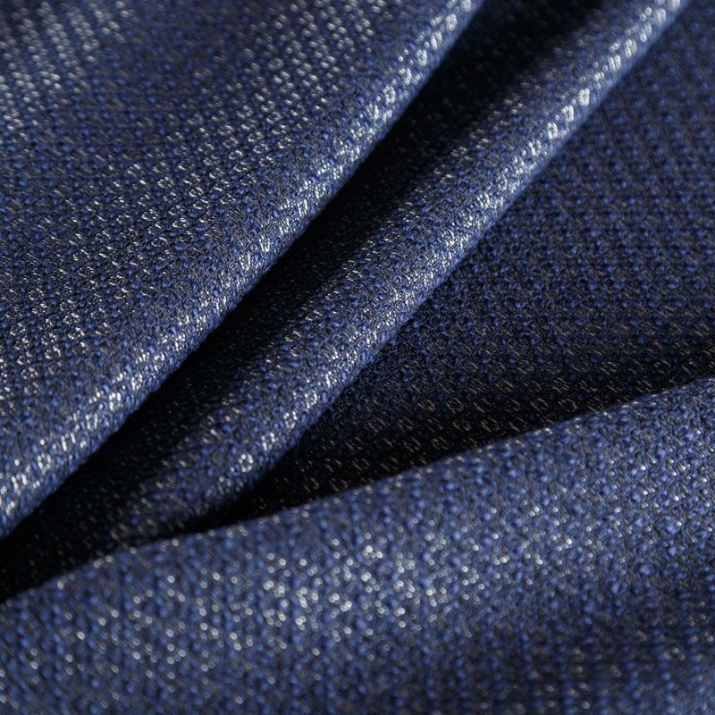Итальянский твид в темно-синем оттенке с добавлением серебристой мягкой нити. Ткань имеет жаккардовую повехность, средней плотности, в меру объемная с легким эффектом букле из нитей того же цвета, которые образуют мелкий геометрический узор. Твид мягкий, пластичный, умеренно держит форму, прекрасно подойдет для пошива жакетов на подкладке, жилетов, кардиганов, легких пальто, юбок и платьев.