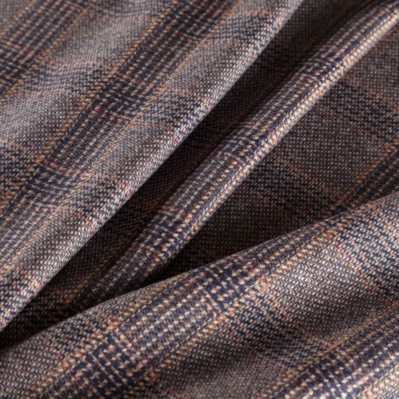 Фактурная твидовая ткань в красивую серо-коричневую клетку тартан. Ткань мягкая, пластичная, приятная на ощупь. Хорошо драпируется и образует формоустойчивые складки. Твид отлично подходит для пошива костюмов, пальто, пиджаков, брюк и курток, юбок, жилетов, головных уборов в классическом стиле.