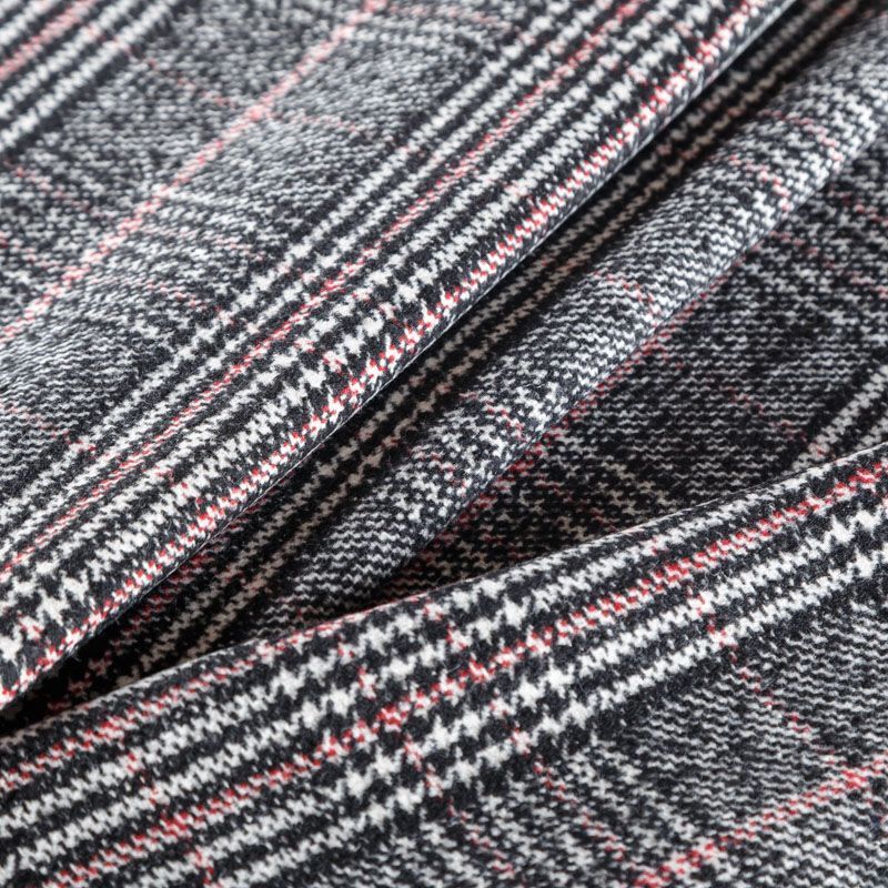 Фактурная твидовая ткань с добавлением хлопка. Сочетание линий белого, черного и розового цвета образуют красивую клетку тартан. Ткань мягкая, пластичная, приятная на ощупь. Хорошо драпируется и образует формоустойчивые складки. Твид отлично подходит для пошива костюмов, пальто, пиджаков, брюк и курток, юбок, жилетов, головных уборов в классическом стиле.