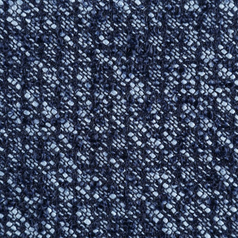 Итальянский шерстяной твид с добавлением шелка в сине-голубых оттенках. Ткань имеет жаккардовую повехность, плотная, в меру объемная с легким эффектом букле из нитей того же цвета, которые образуют мелкий геометрический узор. Твид мягкий, пластичный, умеренно держит форму, прекрасно подойдет для пошива жакетов на подкладке, жилетов, кардиганов, легких пальто, юбок и платьев.