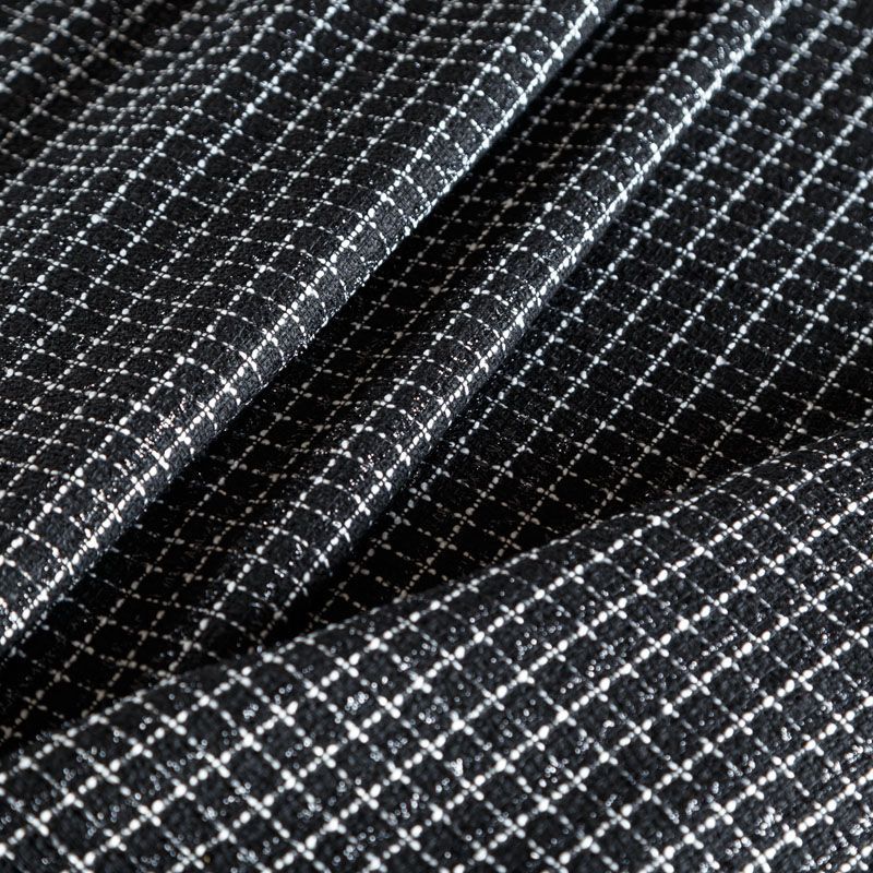 Мягкая, пластичная и объемная ткань, с разреженной и рельефной вывязанной структурой. Буклированный твид в стиле Шанель буквально соткан из различных по толщине и текстуре нитей, образующих рисунок в виде клетки. Твид идеально подходит для пошива платьев, юбок, жакетов, легких пальто, эффектных бомберов и курток.