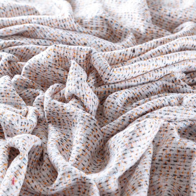 Итальянская мягкая, пластичная и объемная ткань с рельефной структурой. Твид в стиле Шанель буквально соткан из различных по толщине, текстуре и цвету нитей, образующих рисунок в виде клетки и декорирован мелкими пайетками. Твид идеально подходит для пошива платьев, юбок, жакетов, легких пальто, эффектных бомберов и курток.
