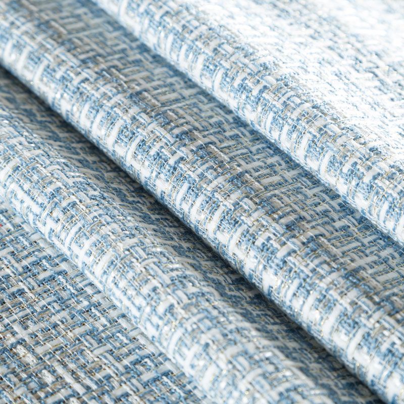 Отличительная особенность этой ткани в полотняном плетении нитей, характерного для рогожки, олицетворяющая сложную "клетчатую" геометрию в бело-голубых оттенках. Различная толщина нитей создает эффектную фактуру. Ткань достаточно формоустойчивая, при этом пластичная, гибкая за счет плетения, матовая, мягкая, приятная на ощупь, не рыхлая. Прекрасно подойдет для пошива жакета, юбки в виде трапеции, легкого пальто, костюма.