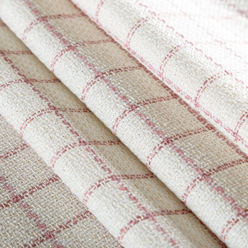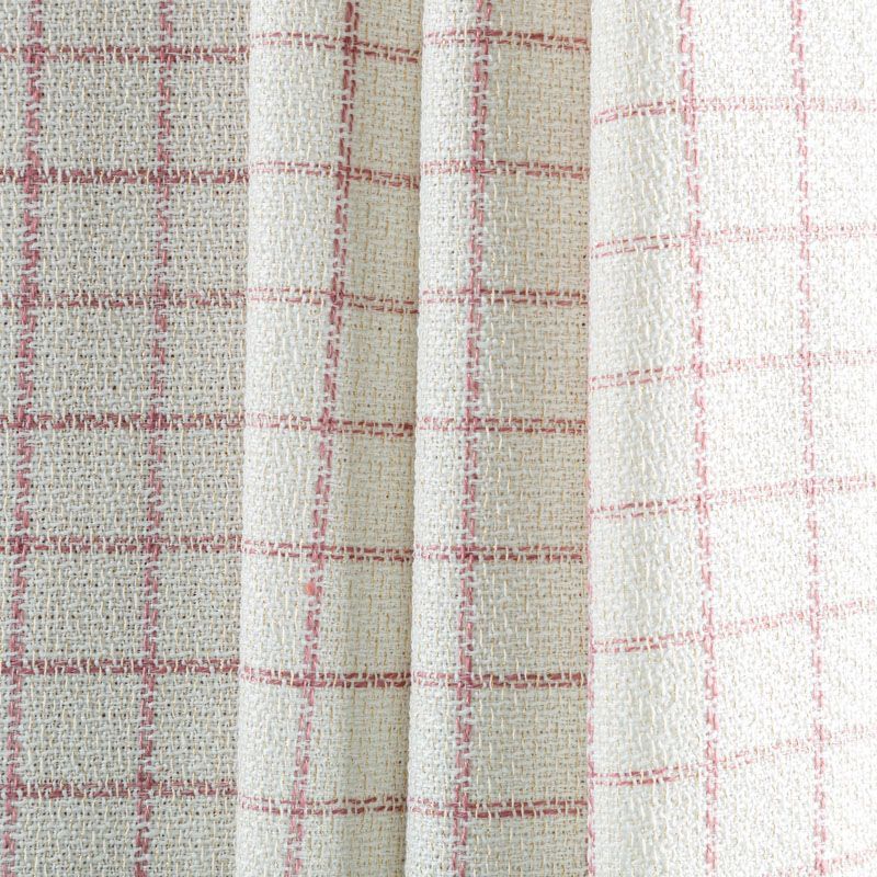 Отличительная особенность этой ткани в полотняном плетении нитей, характерного для рогожки, олицетворяющая сложную "клетчатую" геометрию в розово-молочных оттенках. Различная толщина нитей создает эффектную фактуру. Ткань достаточно формоустойчивая, при этом пластичная, гибкая за счет плетения,  матовая, мягкая, приятная на ощупь, не рыхлая. Прекрасно подойдет для пошива жакета, юбки в виде трапеции, легкого пальто, костюма.
