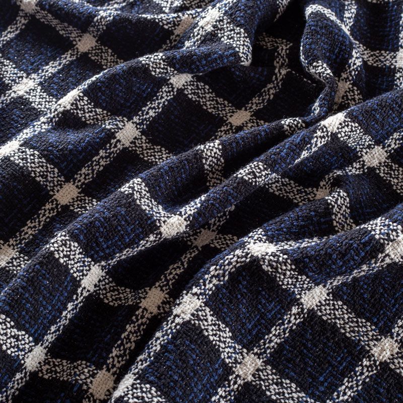 Хлопковый итальянский твид в сине-белой гамме с добавлением люрексовой нити. Ткань мягкая, рыхлая, пластичная с рельефной поверхностью, состоит из матовых нитей разной толщины. Прекрасно подойдет для пошива костюмов, жакетов и платьев в стиле Шанель, которые гармонично впишутся как в нарядный, так и в повседневный образ.