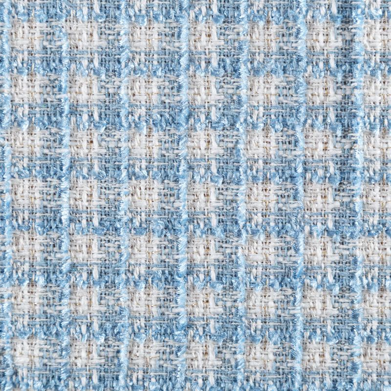 Мягкая, пластичная и объемная ткань, с разреженной и рельефной вывязанной структурой. Буклированный твид в стиле Шанель буквально соткан из различных по толщине и текстуре нитей, образующих рисунок в виде клетки. В плетение добавлена блестящая люрексная нить. Твид идеально подходит для пошива платьев, юбок, жакетов, легких пальто, эффектных бомберов и курток.