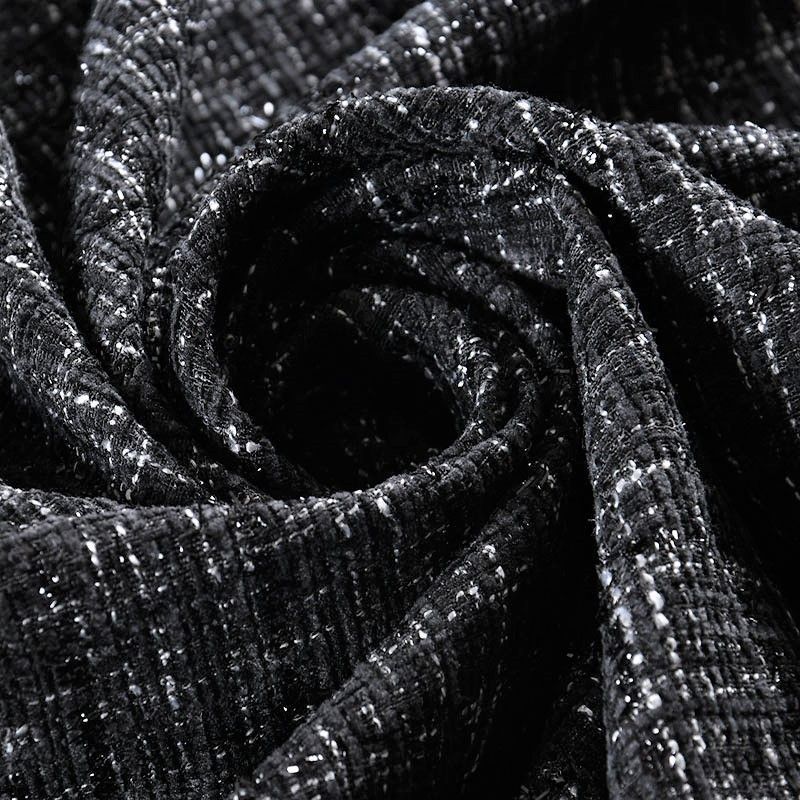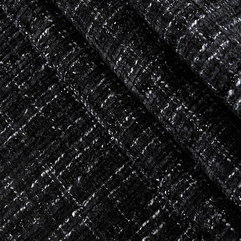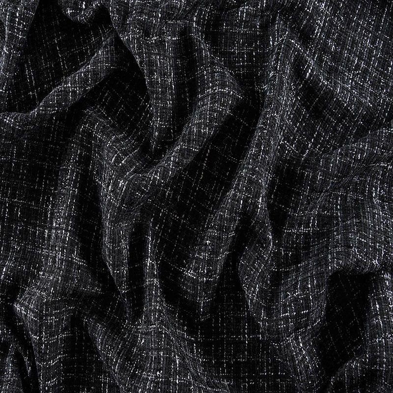 Мягкая, пластичная и объемная ткань, с разреженной и рельефной вывязанной структурой. Буклированный твид в стиле Шанель буквально соткан из различных по толщине и текстуре нитей, образующих рисунок в виде клетки. В плетение добавлена блестящая люрексная нить. Твид идеально подходит для пошива платьев, юбок, жакетов, легких пальто, эффектных бомберов и курток.