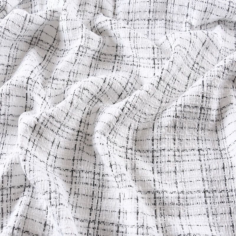 Мягкая, пластичная и объемная ткань, с разреженной и рельефной вывязанной структурой. Буклированный твид в стиле Шанель буквально соткан из различных по толщине и текстуре нитей, образующих рисунок в виде клетки. В плетение добавлена блестящая люрексная нить. Твид идеально подходит для пошива платьев, юбок, жакетов, легких пальто, эффектных бомберов и курток.