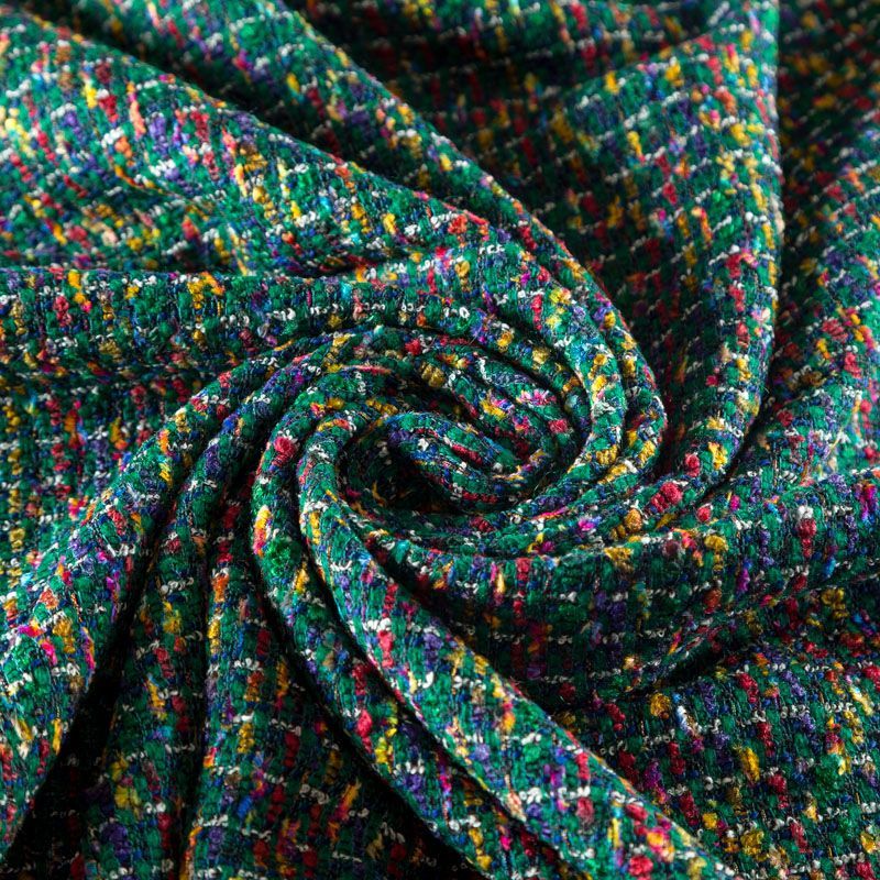 Переплетение разноцветных нитей делает эту ткань универсальной, и в тоже время оригинальной. Полотно плотное, но очень мягкое. Теплое, комфортное. Плетение не рыхлое, поверхность фактурная, поэтому изделия выглядят достаточно объемно. Подойдет для пошива костюмов с юбкой, жакетов, облегченных пальто.