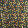 Плотная и мягкая ткань желтого оттенка с изумрудно-коричневым узором пейсли, имеет саржевое плетение и характерный диагональный рубчик на поверхности. Отлично сохраняет форму, не сильно мнется и не деформируется в процессе эксплуатации. Красиво ложится в складки, поэтому прекрасно подойдет на длинные драпированные юбки и платья, на свободные брюки или шорты, топы, комбинезоны, а также для домашней одежды.